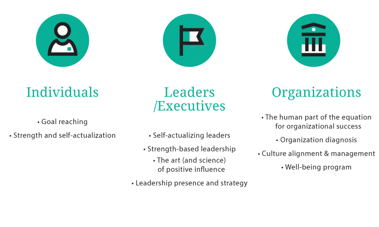 I devote my work and research to positive psychology with individuals, leaders and organizations. I consult and coach individuals, leaders and organizations toward positive growth and well-being in their personal and professional lives in meaningful ways. I use the science of psychology in practical ways that support my clients towards goal reaching, self-awareness, strength building and overall well-being including life satisfaction, job satisfaction, etc.